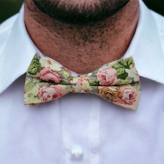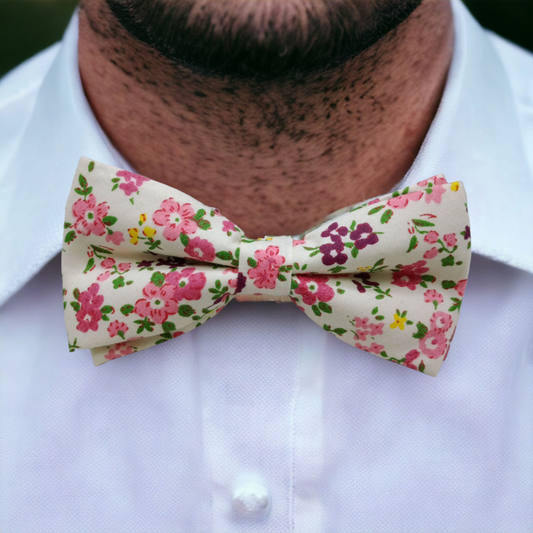 Nœud papillon Beige motifs fleuris Papa et Enfant 100% Coton
