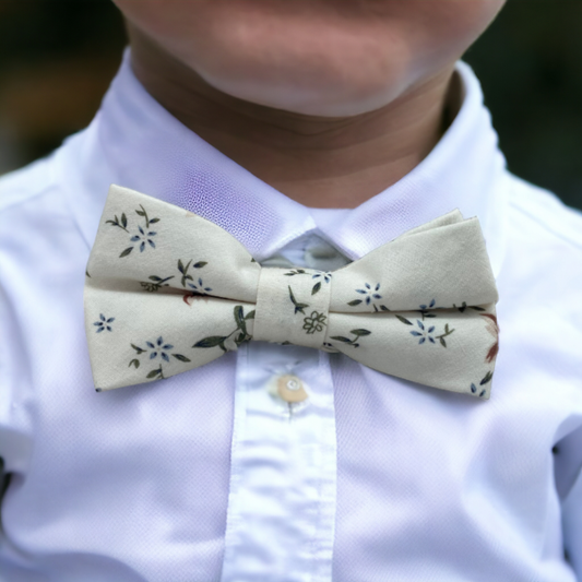 Nœud papillon Beige motifs fleuris Papa et Enfant 100% Coton